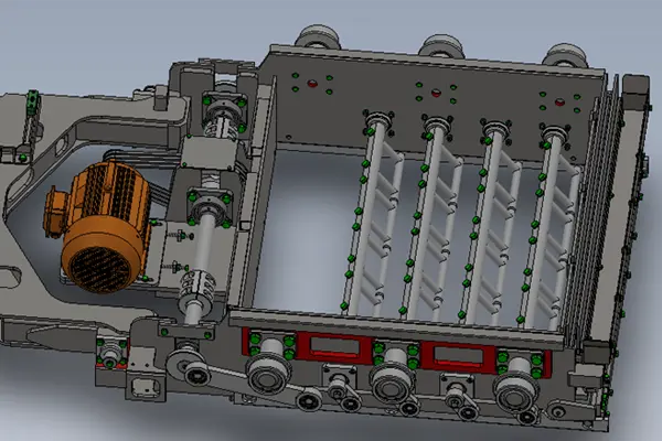 4 ระบบให้อาหารที่ถูกระงับระบบป้อนแบบแขวนใช้การออกแบบแบบโมดูลาร์ที่รวมกล่องฟีด เครื่องขูด แปรงงัดแงะ และอุปกรณ์ทำลายส่วนโค้ง กล่องป้อนทั้งแบบผสมใบหน้าและแบบฐานติดตั้งอยู่บนโครงป้อน ช่วยให้เปลี่ยนได้อย่างรวดเร็วและประสิทธิภาพการป้อนสูงสุด